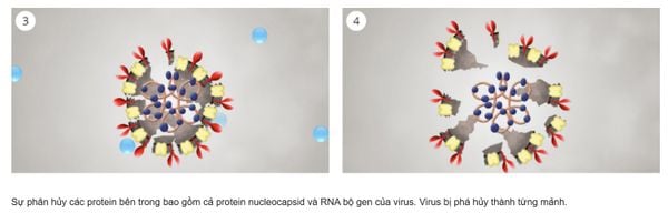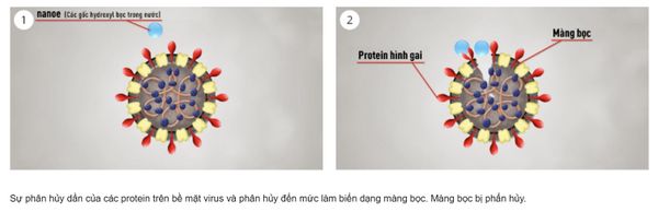 Nanoe™X tiếp xúc với bề mặt virus, phá hủy các protein trên bề mặt tế bào, bao gồm cả protein hình gai giúp virus liên kết với tế bào, cũng như phá hủy màn bọc.