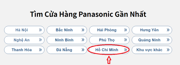 Bước 3 : Kéo xuống phần Tim cửa hàng Panasonic – Chọn khu vực TP.Hồ Chí Minh