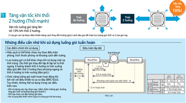 Các dàn lạnh có thể cung cấp 3 đến 5 chế độ kiểm soát lưu lượng gió.