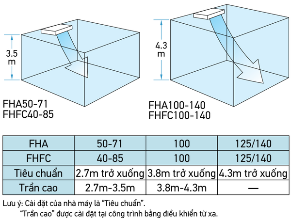 Thích hợp với trần nhà cao ( *thông số tùy theo Model )